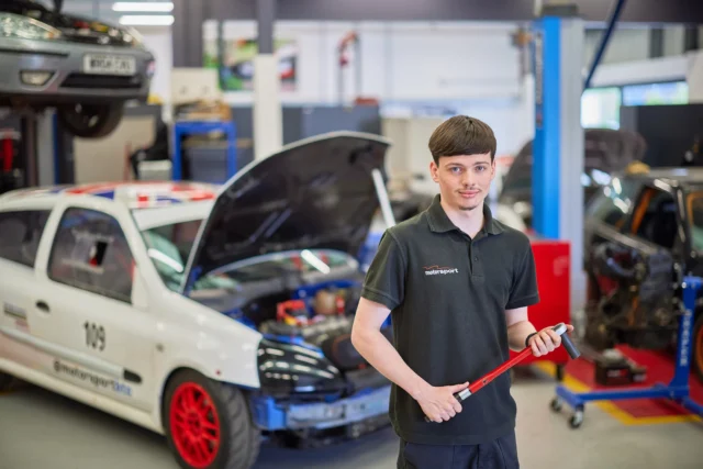 Hi, I’m Felix, and I study Motorsport. What I enjoy most about my course is working hands-on with the cars. I learn a lot better by doing practical tasks, and I find it really rewarding to get stuck into the work. I also enjoy the theory side of things because I’ve always been passionate about racing. In fact, I used to race myself, and understanding how to make a car faster has always fascinated me.