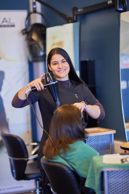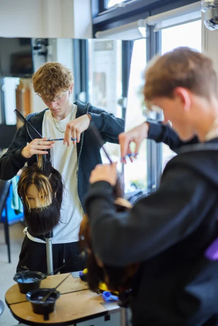 Not only do all of our students learn in a realistic working environment with paying customers, gaining experience that mirrors life in a real salon, but they can also take part in hair competitions and creative challenges, guest workshops from industry professionals, opportunities for work placements and apprenticeships, and business-focused training to support self-employment.